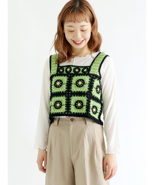 今年のトレンドアイテム、かぎ針編みでしあげたビスチェ。 抜け感溢れるかぎ針編みの透け感がレトロガーリーなスタイリングに仕上げます。 カットソーやワンピースなどとレイヤードスタイルもおすすめです。★《お気に入り登録》でお得な情報をGET★① 商品ページ内のハートマークをクリック!② 以下通知が受け取れます!「再入荷」「ラスト1点」「特別セール」etc..\ブランド、ショップのお気に入りも是非!/