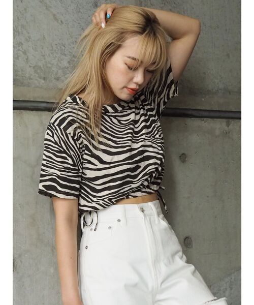 ショート丈のドロストトップスはゼブラ柄と無地での展開となっています。裾部分に共生地のドロストコードを通し、絞るとふんわりとしたシルエットで着用できる一枚です。ショート丈のトップスは何にでも合わせやすい一枚です。