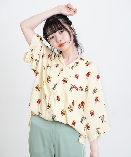 【JUNK FOODシリーズ】 美味しそうなジャンクフード柄が目を引くシャツ ■ハンバーガー・シェイク・ポテトのオリジナルプリントがポイント ■落ち感のあるレーヨン素材がカジュアルな印象を引き立てます ■ゆったりとしたシルエットがこなれ感を演出 ■少し長めの袖丈が二の腕をカバー 【スタイリング提案】 スラックスパンツやスウェットパンツなどのリラックスアイテムとの相性抜群!ロングスカートやデニムスカートと合わせたガーリーな着こなしもおすすめです。 ●シリーズ >>>SHAKE KEY CHAIN(103221054010) >>>S/S TEE HAMBURGER(103221011017) >>>S/S TEE FRIED POTATOES(103221011018) ・透け感:あり ・伸縮性:なし ・生地の厚さ:薄手 ・裏地:なし ※ベージュで計測しています 【MILKFED.(ミルクフェド)2022 SPRING COLLECTION】 ※画像の商品は光の照射や角度により、実物と色味が異なる場合がございます。 また表示のサイズ感と実物は若干異なる場合もございますので、予めご了承ください。 ※画像の商品はサンプルとなります。 実際の商品と色味、仕様、加工、サイズ、素材等が若干異なる場合がございます。