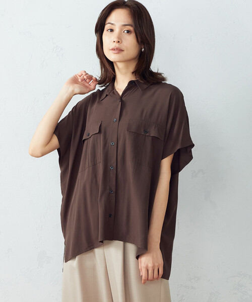 《素材》さらりとした清涼感のあるレーヨン素材を使用。素材の特性である、しなやかなドレープ性があり、なめらかで上品な素材感が特徴です。《デザイン》ゆったりとしたオーバーサイズと、とろみのある生地のルーズなシルエット相まった、旬な印象のサファリシャツ。ワークテイストのポケットをいれ、カジュアル感をプラス。ゆったりとしたワイドなシルエットから続くドルマンスリーブで、腕をすっきりと見せるデザインです。着丈は、前後差をつけたヘムデザインでスカートでもパンツでもスタイリングしやすいのもポイント。後ろはヒップが隠れる、長めの設定。前を開けて羽織として、衿を抜いてルーズに着こなしたり、着まわしにも活躍します。※画像の商品はサンプルとなりますので実際の商品と仕様、加工、サイズが若干異なる場合がございます。※こちらの商品はFIVE FOXes独自の採寸方法となっています。本サイトのサイズガイドと採寸方法が異なる場合がありますのでご了承ください。