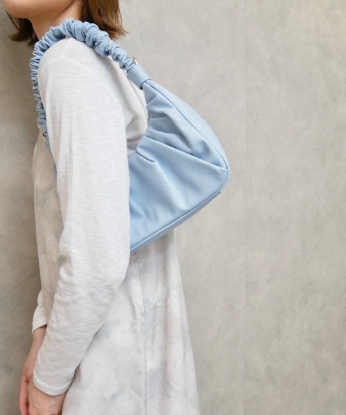 流行のハンドルバッグは たっぷりギャザーのくしゅくしゅ感が可愛いアイテム! ギャザーデザインが一気に大人の抜け感をプラス。 取り外し可能なショルダー紐もついていて 2wayでご使用いただけます。 ハンドル部分は長めなので 肩掛けも楽ちん◎ これからの季節のコーディネートの 差し色にぴったりのパステルブルーのお色です。