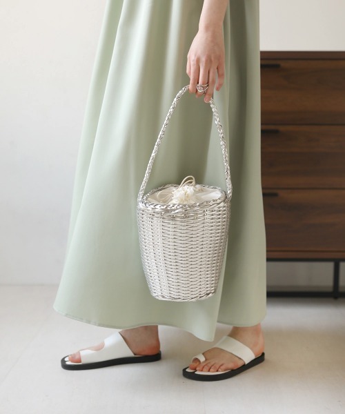 ●Bab● ■POINT シルバーカラーがコーディネートのポイントになるかごバッグ。底が深いバケツ型で、お財布(長財布・折財布)、化粧ポーチ、ハンカチなど、荷物がたくさん入るのも嬉しいポイント。500mlのペットボトルも入れて頂けます!開け口は中身が見えない巾着付きで安心してお使い頂けます。普段のコーディネートに取り入れるだけでオシャレ度がぐんとUPするアイテムです! ■FABRIC 程良い硬さで使いやすさバッチリです。 ※撮影環境により、多少実際のカラーと異なる場合がございます。また、携帯やスマートフォン、パソコンなどの画面上と実物では多少色が異なって見える場合がございます。ご了承下さいませ。 ※濃色品は、過度な摩擦や濡れた状態での摩擦により、色落ち・色移りをする恐れがあります。 ※その他お取り扱いに関しましては、商品に付属のアテンションタグをご覧ください。 ★商品のお気に入り登録 再入荷やラスト1点のお知らせ、セール情報などお知らせを受け取ることができます! ★ブランドのお気に入り登録 新商品や再入荷などのお得な情報を受け取ることができますので、是非ご登録ください。 ※他のキャンペーンにより、期間中に価格が変動する場合があります。※セールは予告なく終了させていただく場合もあります。 ※ご注文いただいた予約商品のお届け時期の確認は、注文履歴ページより行えます。 ※他のキャンペーンにより、期間中に価格が変動する場合があります。※セールは予告なく終了させていただく場合もあります。