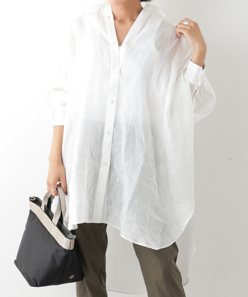 ★OUVRAGE CLASSE 2022SS COLLECTION★ 好評のラミービックシャツが今年も登場しました 使用しているラミー素材はラミー独特の光沢感と程良い透け感としなやかさがあります。 麻独特のハリ感を残しながらも肌触りの良い素材感です。 ナチュラル感のイメージが強い麻素材ですが、きれいめカジュアルな最適な素材を使用しています。 今年は、キャミワンピースやタンクトップやTシャツなどの上に羽織としてもオススメの着こなしになります。 - - - - - - - - - - - - - - - 透け感:ややあり 裏地:なし 伸縮性:なし 光沢感:ややあり 生地の厚さ:薄手 ■手洗い可能 - - - - - - - - - - - - - - -●気になる商品には是非「お気に入り」登録をお願いします● 気になる商品のお好きなカラーやサイズ感に、ハートマークをクリックして頂き、お気に入りに登録して頂くと… 入荷情報や残り1点の通知、完売カラーの再入荷、セール情報などを受け取ることができます。 【スタッフ着用コメント】 ---------------------------- 年齢:20代後半、身長:156cm、体型:普通 普段サイズ:S・Mサイズ 着用サイズ:フリーサイズ サイズ感:身幅はオーバサイズで、前後差あるデザインです。お袖は、肩のラインが落ちている為ドルマン袖のようになっています。 素材感:ラミーという麻を使っており透け感があります。(かなり薄手です。) 着心地:暑い日はサラッと着れる一枚です。 日焼けや冷房対策として使えるので、とても活用出来ます。軽くて持ち運び◎ ---------------------------- ---------------------------- 年齢:20代前半、身長:160cm、体型:普通 普段サイズ:Mサイズ 着用サイズ:フリーサイズ サイズ感:全体的にゆったりとしたオーバーサイズで、後ろの丈が膝くらいの長さになっています。 素材感:ラミー(麻)でできていて、強度、速乾性に優れています。麻のチクチク感もなく肌触りの良い素材です。 着心地:透け感があるのでデザインのあるキャミソールと合わせていただくと今年らしく着ることができます。 通気性があるので汗が気になる夏場に大活躍しそうです◎ -----------------------------