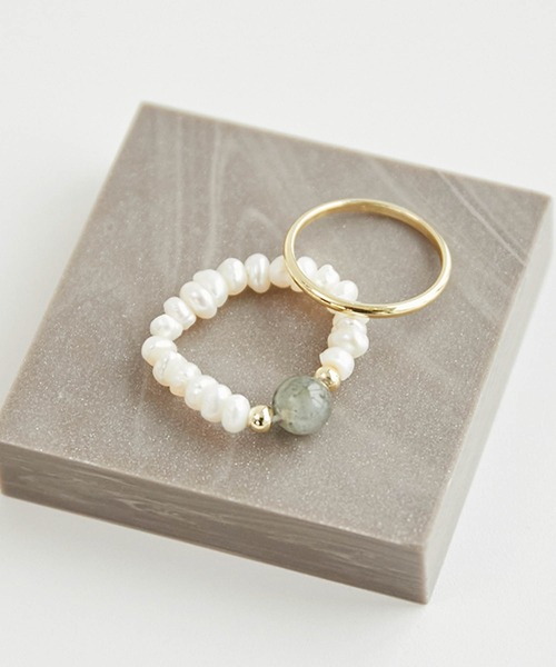 天然石リングとゴールドのシンプルリングがセットになったアイテム。単体使いはもちろん、重ね付けもおすすめ。※撮影時の光、お使いのモニター環境によって色の見え方が違う場合がございます。