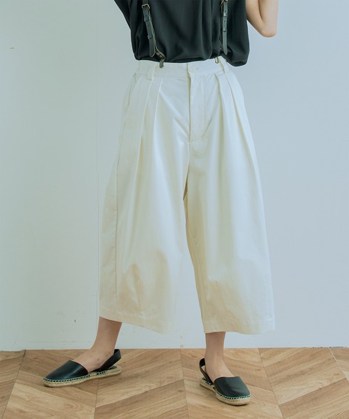 「KELEN/ ケレン」CULOTTES PANTS"CIOL" 2ウェイキュロット&スカート カーブをかけたサイドラインを裾のタックで絞ったシルエットが新鮮なバランスのキュロットトラウザー。丸みのあるバレルラインとふくらはぎをちょうど隠すレングスは夏にかけて活躍間違いなしのアイテムです。Backのポケットは玉縁仕様にしているので、きちんと感のあるトップスとの相性も◎です。 KELEN SPRING COLLECTION 2022 "off" 「Off The Home & Off Duty & Off」外出や勤務外、休日など「off」を取り巻く様々な意味。着ているだけで気分を高揚させえてくれるデザインをテーマに、素材・カラー・ディティール・シルエットを組み合わせて作った「off」の気分をあげるコレクション。 KELEN / ケレン 10年後も変わらず着れる。をコンセプトに、ワーク・ミリタリー・ヴィンテージウェアアイテムの伝統的な技術やディティール・シルエットをベースに、 トレンド感と今の気分を織り交ぜて仕立てる"ケレン"というニュースタンダードを提案しています。 商品のお気に入り登録をおすすめです! ♡マークをクリックすることで完売カラーの再入荷や、ラスト1点の通知、 お得な情報の通知を受ける事ができます。 ブランドのお気に入り登録も是非! 新商品や再入荷など、いち早くブランドのお得情報を受け取ることができます。