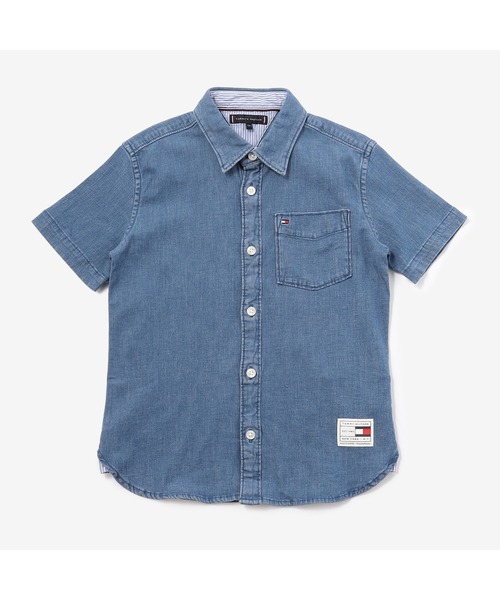 ショートスリーブデニムシャツ ・普段使いのしやすいカジュアルさと、きちんと見えする上品さを併せ持ったデニムシャツ。 ・涼しく着られる半袖タイプは、ロングスリーブTシャツとのレイヤードでオールシーズン活躍します。 ・バックヨーク下には、脱いだときにフックに掛けられるフラッグカラーのループをプラス。 ・裾は、サイドのマチにストライプ生地を使用しています。