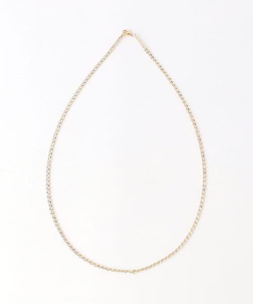 楕円形の中央にラインが入った個性的なカーブチェーンを用いたネックレス。 一見シンプルながらも独特のチェーン使いで、首元にシャープなエッセンスを添える一点です。 すっきりと首に沿う長さは、ラフなスタイリングのアクセントに最適。 主張しすぎず普段使いしやすいのも魅力です。 <MAPLE> 2006年にカナダのエドモントンにて誕生した、セレクトショップ"HEAVEN"(ヘブン)。 <JUNYA WATANABE>や<visvim>、<Endgeneered Garments>等の日本ブランドをメインとしたセレクトで世界的にも有名なショップであり、 同ショップのオリジナルブランドとして誕生したのが<MAPLE>です。 その取り扱い店にはSLAM JAMやNordstrom、American Rag Cie、UBIQ等、世界中の名ショップにて取り扱われており、今世界が最も注目するブランドの一つです。 【注意事項】 ※商品を使用前に、タグ等に記載されている「取り扱い上の注意書き」、「洗濯表示」を必ずご確認ください。 ※商品画像は、光の当たり具合やパソコンなどの閲覧環境により、実際の色味と異なって見える場合がございます。予めご了承ください。 ※商品の色味の目安は、商品単体の画像をご参照ください。 店舗へお問い合わせの際は、全国のBEAUTY & YOUTH各店舗まで下記の品名/品番をお申し付け下さい。 品名:MAPLE BAR CURB CHAIN GD 品番:8333-499-0616