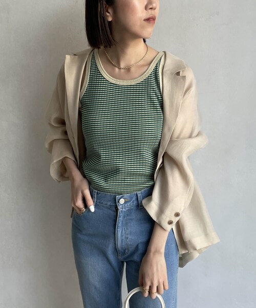 マルチに使える配色タンクトップ商品ポイント・細めのボーダーでカジュアル過ぎない印象・配色がコーデのポイントに・タックインしやすい長めの着丈・肩紐に幅があるため下着が見えにくいのもポイント・伸縮性があるので着脱しやすいスタイリングポイント・シャツやジャケットと合わせた羽織スタイルがおすすめ・ワンピースのインナーや透け感のあるトップスのインナーに・真夏は1枚でヘルシーに着ても◎**********************透け感:なし裏地:なし伸縮性:あり光沢感:なし**********************▼洗濯方法手洗い可能※撮影場所やお使いのモニター環境により若干お色味が異なる場合がございます。特にロケの撮影では明るく見える傾向にございます。※商品はサンプルで撮影をしております。若干の仕様が変更になる場合がございますので予めご了承の上ご注文くださいますようお願いいたします。▼商品のお気に入り登録完売カラーの再入荷通知や、ラスト1点の通知、セールの通知も受け取ることができます。▼ブランドのお気に入り登録新商品や再入荷など、いち早くブランドのお得な情報を受け取ることができます。