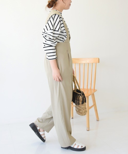 シーズンレスで活躍する大人の女性にぴったりなサロペット。 カジュアルな印象のサロペットも、深くあいたVデザインと落ち感のある生地とタックの入ったパンツは子供っぽくならずきれいめな印象に仕上げてくれます。 一枚で簡単にコーディネートが完成するおしゃれアイテムです。 合わせるインナーや羽織次第で雰囲気を変えられて、長袖はもちろんタンクトップや半袖合わせでロングシーズン着用していただけます。 ネックレスなどのアクセサリーのコーディネートも楽しめてワードローブに是非プラスしてほしい、おすすめのひと品です。 ★おススメPOINT★ ●着回し力抜群のVネックサロペット ●ロングシーズン着用可能で様々なシーンで活躍 ●1枚でコーディネートが完成するおしゃれアイテム ●カラーは、ベーシックで使いやすいブラック ベージュの2色展開 ▼モデル着用写真は撮影環境により、多少実際のカラーと異なる場合がございます。 ☆NOFALLsango ZOZOTOWNお買い物ガイド☆ お買い物をよりお楽しみいただく為に ▼商品のお気に入り登録 💛をクリック! 完売カラーの再入荷通知・お気に入りアイテムの値下げ・ラスト1点などの通知をお知らせいたします。 ▼ブランドのお気に入り登録 💛をクリック! 新商品や再入荷などお得な情報を受け取ることができます。