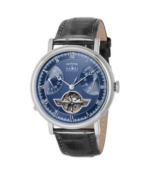 AngelClover SONNE―ゾンネ―とは、ドイツ語で「太陽」を意味します。古くから、時間を知るために使われていた日時計と深く関わる太陽がブランド名に由来しています。機械式時計のもつ凛とした佇まいと装飾の美しさにこだわったモノづくり。日常にスタイルのある男性に向け、大人の品と色気を演出するブランドです。 H024 SONNE初の機能であるレトログラード式のカレンダーとパワーリザーブインジケーターを搭載。光沢感あるベルトで高級感を漂わせ、機能とデザインを兼ね揃えた大人の時計です。 Spec 文字盤カラー:ネイビー 防水性能:日常生活防水 駆動方式:自動巻き ガラス素材:ミネラルガラス 表示方式:アナログ サイズ:ケース縦44mm×横44mm×厚み13.5mm/重さ84.5g 機能:2時位置:パワーリザーブ10時位置:日付 保証:1年(自然故障保証) 付属品:箱/取扱説明書/保証書 --------------------------------------------------------- お気に入り登録のオススメ ▼商品のお気に入り登録 再入荷、残り1点、セールなどの通知を受け取ることができます。 ▼ブランドのお気に入り登録 新商品や再入荷など、いち早くブランドの情報を受け取ることができます。 ---------------------------------------------------------