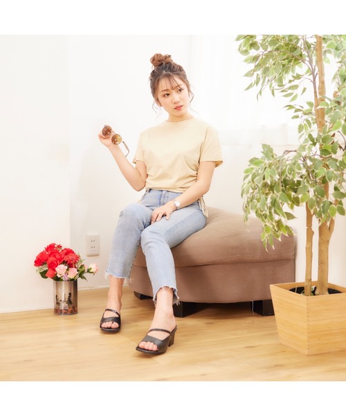 カットデザインが程よいヌーディーな足元にしてくれるサンダル。太めヒールの安定した履き心地も魅力♪スクエアトゥが今年らしいアイテム。
