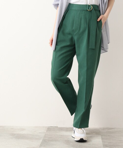 【デザイン】 麻混のシャリ感のある素材で、楽に穿いていただけるテーパードパンツです。 ゆるめのテーパードシルエットが今年らしく、ウエストのベルト風ディテールがデザインポイントになっています。 センタープレスが入っているので、キレイ目にも穿いていただけます。 ウエスト後ろはゴム仕様でフィット感がありつつ穿き心地は楽ちんです! ※同素材のジレ(741-24001)とセットで着ていただけます。 ※ポケット数:横×2 【生地感】 やや肉感のある表情豊かな表面感で、麻混ならではのドライタッチな風合いが魅力です。 ※裏地なし ※ナチュラル(050)はやや透け感があるため、インナーの着用をおすすめします。 モデル情報:身長163cm B81 W56 H82 着用サイズ:02(M) 店舗へのお問い合わせ商品番号:741-64023 ●製品寸法: 02(M):W66~76cm H90cm 股下68cm 前股上35cm 渡り幅32cm 裾幅20cm 03(L):W68~78cm H92cm 股下68cm 前股上36cm 渡り幅33cm 裾幅21cm 04(LL):W70~80cm H94cm 股下68cm 前股上36cm 渡り幅34cm 裾幅21cm 備考: