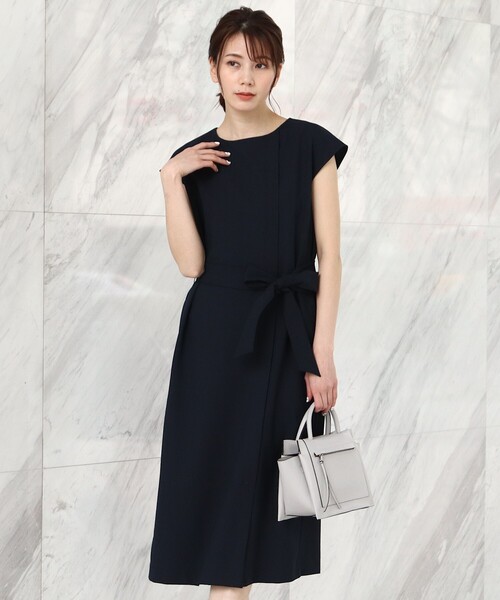 夏にサラッと着られる『リネンライクシリーズ』。 女性らしいきちんと感のあるサックワンピース。 ~POINT~ ・ストンとしたゆったりシルエットのサックワンピースなので、楽に着られる ・裾にはスリットが入っていて軽さが出た見え方に ・ウエストのリボンは取り外し可能なので、ウエストマークをしても、リボンを外してゆったりと着てもどちらでも着られます ・さらっとした軽いリネンライクな質感で、夏も着心地がよい 【ディティール/機能】 ・裏地あり ・ポケット数:横×2 ・前スリット部分はしつけ糸で止めていますが、着用の際はお取りください。 こちらの商品は主に夏に着用いただける商品です。 モデル情報:身長167cm B78 W62 H88 着用サイズ:09(M) 店舗へのお問い合わせ商品番号:732-54500 ●製品寸法: 09(M):着丈111cm B96cm 肩幅54cm 11(L):着丈113cm B99cm 肩幅55cm 13(LL):着丈114cm B103cm 肩幅56cm 15(3L):着丈115cm B107cm 肩幅57cm 備考: