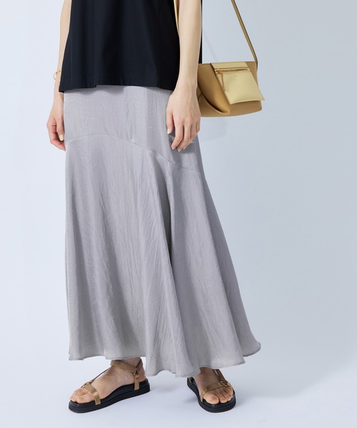 【素材】サスティナブルなアセテート『Naia』を使用したツイル素材。サテンほど強くない光沢感と落ち感を実現し、ナチュラルなビンテージ感でこなれ感を演出しています。【デザイン・シルエット】ヒップまわりが、スッキリとしたシルエットのマーメイドスカート。たっぷりと裾周りを出すことでボリューム感のあるマーメイドシルエットを演出しています。【カラー】カーキ、ライトブルーの2色展開。 ドットプリントで同型展開しています。【おすすめのスタイリング】ジャケットやツイードアイテム、ニットベスト等とあわせたモダンなクラシックスタイルがおすすめです。またシンプルなカットソー合わせでも様になるアイテムです。----------------------------透け感:少しあり裏地:あり伸縮性:なし光沢感:あり生地の厚さ:薄手ポケット:洗濯方法:手洗い可能----------------------------【モデル情報】モデル身長:167cm 着用サイズ:38※画像の商品はサンプルです。 実際の商品と仕様、加工、サイズが異なる場合がございます。※撮影場所やライティング、お使いのモニター環境によって色の見え方が異なる場合がございます。