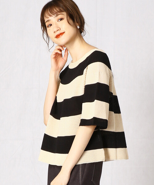 〈デザイン〉ネックラインを円の中心にして、放射線状に編んでいく「求心(きゅうしん)編み」のニット。太めのボーダーデザインで、袖と裾が程よいAラインのシルエット。1枚で個性を出せるニットです。〈素材〉素材のドレープ性が高い為、肌に馴染み易く、シャリ感があり、清涼感を楽しめます。編み地は、凹凸があるガーター編みなので、肌への接地面が少なく、通気性も追求しています。…………………….…….…….…透け感:なし厚さ:ふつう伸縮性:あり光沢感:なし裏地:なしポケット:なし洗濯方法:手洗い…………………………..…….…※画像の商品はサンプルとなりますので実際の商品と仕様、加工、サイズが若干異なる場合がございます。※こちらの商品はFIVE FOXes独自の採寸方法となっています。本サイトのサイズガイドと採寸方法が異なる場合がありますのでご了承ください。