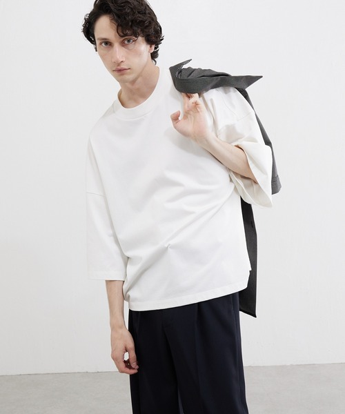 Lui's(ルイス)オリジナル22SSより、素材、シルエットともに拘った今季注目の【プレミアムスビン】シリーズより、プレミアムスビンモダンビッグシルエットTシャツの登場です。 これからの夏メインとなる一枚で着て頂ける、一枚です。 【素材】 《PREMIUM SUVIN COTTON(プレミアムスビンコットン)》 世界最高峰の超長綿(PREMIUM SUVIN COTTON)は、 コットンでありながらシルクのような光沢と天然の油脂分をふんだんに含み、 カシミヤのような肌触りを持つ、たいへん希少価値の高い最高綿になります。 【デザイン】 今季新しいシルエットのBIGT。 肩が落ちているドロップショルダーで、身幅と袖幅のわたりを広く取っているのでストレスレスに着て頂けます。 袖丈はやや7分丈の半端袖。腕捲りしても綺麗に着て頂けます。 裾のパターンに拘っており、通常は脇から裾にかけてストンとまっすぐに落ちるパターンがほとんどですが、 こちらは裾からやや上の部分から内側にカーブしたパターンになっており、着用した時に全体的に丸みを帯びたシルエットになるように設計されております。そうする事で柔らかい印象をプラスし、カジュアルな提案でも着て頂けるようになりました。 モードでもカジュアルでもどちらでも着て頂ける万能なBIGTシャツです。 【コーディネート】 シルエットに拘りのあるBIGTシャツなので、一枚で着て頂くのはもちろん、ワイドパンツやフレアパンツに組み合わせたモードなスタイルを楽しんで頂くのがオススメ。 また、今季はカーゴパンツやショーツに革靴を組み合わせた、モードでカジュアルな印象のスタイルを楽しんで頂くのもオススメです。 【ブランド】 Lui's(ルイス) モテる男のワードローブをテーマにモード&ストリートのMIXコーディネートを提案。 着心地、カッティング、素材感を重視した商品を国内外問わず編集し発信していく。 ■商品のお気に入りの登録(ハートマーク) 完売カラーの再入荷、ラスト1点の通知、セールの際の通知を受け取れます。 ■ブランドのお気に入り登録 新商品の入荷など、いち早くブランドのお得な情報を受け取れます。是非ご利用ください。 ※掲載商品の商品の色味は、屋内の光の照射や角度により実物とは色味が異なることがございます予めご了承ください。