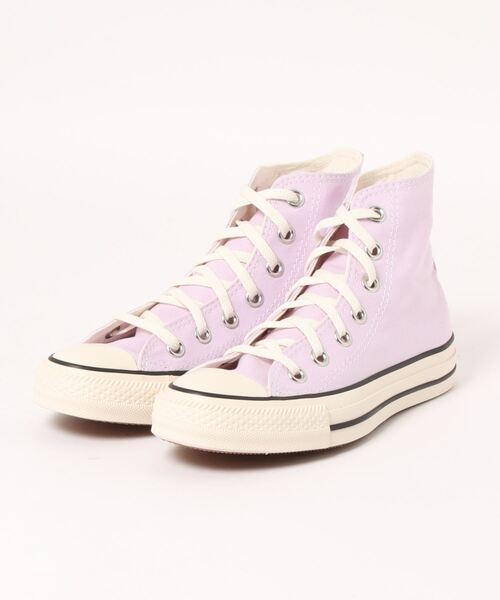 オールスターのディテールアレンジ ハイカットモデル。 太陽を浴びて色褪せたかのようなニュアンスカラーのアッパーに、生成りのソールテープ、シューレース、ライニングを採用したオールスター。 ガムカラーのアウトソールや通常よりピッチの広いステッチ使いなど、シンプルながらもディテールにこだわった一足。 マンゴーオレンジにはライトブルーのスペアシューレース、シーグリーンにはピンクのスペアシューレース、ライラックにはライトグリーンのスペアシューレースが付属し、よりポップな表情にイメージチェンジも可能♪ コーデやシーンによってアレンジが楽しめます! ※展開サイズ:レディース ・素材:キャンバス ・アウトソール:ゴム底 ・サイズ感:標準(個人差がございますので目安です)