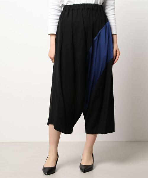 滑らかでやや光沢のある素材を使ったエクセルツイルシリーズ。 落ち感がありとろみがあるので、ボリュームのあるデザインでも 細身に見えるのが嬉しい素材。 取扱いも簡単なので、オールシーズン使えるシリーズです。 gommeが得意とするサルエルパンツ。 だらしなく見えがちなサルエルですが、gommeが作るとモードな雰囲気。 ルーズだけど、かっこよい。そんなパンツです。 切り替えを入れることで立体的なフォルムが完成。 落ち感があるので、ワイドだけどスマートに見えるのも嬉しいですね。 おすすめの一着です。