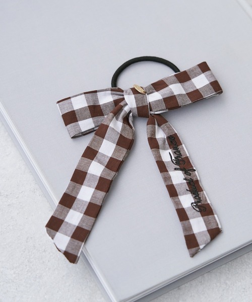 【デザイン・シルエット】・ギンガムチェック柄のヘアゴム。【カラー】・ブラウン、ブルー、レッドの3色展開。【スタイリングポイント】・高めの位置でボニーテールをすればレトロな雰囲気に。※撮影時の光、お使いのモニター環境によって色の見え方が違う場合がございます。※店舗での販売は4/8(金)~を予定しております。