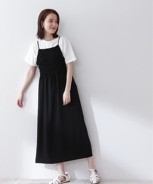 前後2Wayで着られるキャミワンピース。胸元を深めに開けたVネックラインと真っすぐ切り替えたシャーリング部分の前後2Wayで着られるデザインです。Tシャツやノースリトップスのレイヤードスタイルにおすすめです。軽い素材で広がりを抑えたシルエット、華奢なショルダー紐を使っているので、レイヤードスタイルを重くみえない工夫がされたレディな仕上がりです。ご自宅でお洗濯ができ、デイリーに気兼ねなくご利用いただけます。※お洗濯の際は、付属の注意書きや商品についている品質表示をご確認いただきますようお願いいたします。