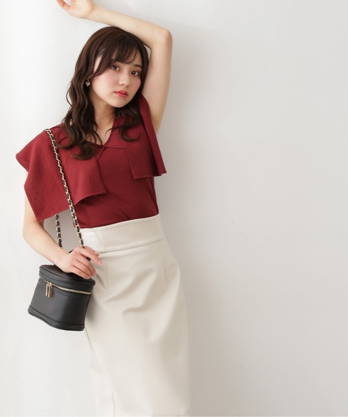 【商品特徴】立体的に見せるバイカラーのラッフルカラーが視線をひきつけるニットです。 ノースリーブでもラッフル襟が腕にかかるほどの長さなので、 肌の露出しすぎず上品な印象です。 すっきり開いたネックラインとバックスタイルの大きな襟がボディラインを華奢に見せてくれるデザイン。 インしていただくとスタイルアップ見えを叶えてくれます。 【スタイリング】 無地はもちろんレースや柄スカートとも相性抜群です。 <商品のお気に入り登録> お気に入りアイテムの値下げ・再入荷・在庫1点などの通知を受け取ることができる 便利機能ですので気に入ったアイテムはお気に入り登録がおすすめ! <ショップのお気に入り登録> 新商品や再入荷、セール、クーポン配布などお得な情報を受け取ることができます。 ●撮影はサンプル商品で行っている為、仕様とサイズが異なる場合がございます。 ●スタジオ及び屋外で撮影した着用画像は、光の当たり具合で色味が違って見える場合があります。予めご了承ください。