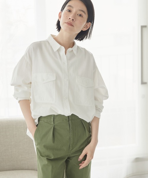 ほんのりとシボ感のあるナチュラルな風合いが魅力のコットンジョーゼットシャツ。 薄手で軽く、心地よい着心地もポイントです。 胸元のフラップポケットがワークテイストなアクセントに。トレンド感のあるオーバーシルエットでルーズに着こなしたいアイテムです。 透け感[有り]オフホワイトやや有り 裏地[無し] 伸縮性[無し] 光沢感[無し] 生地の厚さ[薄手] 付属品[無し] ポケット[有り]前2つ ●AMERICAN HOLIC ● (アメリカンホリック) 大人の女性の毎日を軽やかで豊かにするブランド。 カジュアルなのにオシャレ、コーディネートも楽。ONにもOFFにも等身大で楽しむオトナの日常着をテーマに、スタイリッシュかつ自然体を楽しめるカジュアルスタイルを提案します。 ▼ 商品のお気に入り登録がおすすめです ▼ 商品ページ内のハートマークをクリック。完売時の再入荷や、最後の1点の通知、お得なお値下げの際の通知を受ける事ができます。 【お知らせ】ページでも通知が確認できます。