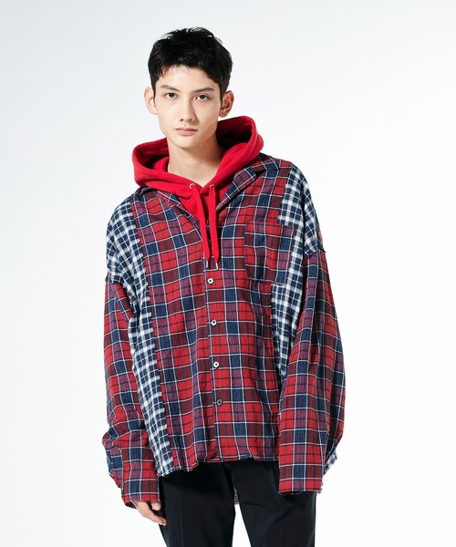リネン混の2色のチェック生地を使用したチェックシャツ。清涼感のある薄さと2色の柄を使用し、全ての箇所を断ち切りにしてグランジファッションの様な着古した雰囲気に仕上げました。 オーバーサイズで着用していただける様にビッグなシルエットで仕上げており、袖に溜まりができる様に一般的なシャツとは異なる袖のボタンの留め方も変えております。 一見シンプルなチェックシャツですが、リネン特有の風合いがあり、ハギ目を増やし、断ち切り箇所を増やしてアクセントになる様に仕上げております。 VICTIM VICTIMとは“FASHON VICTIM”、直訳では“流行の犠牲者”という意味になるが、 ブランドとしては“ファッションに没頭する”という意味合いを持たせており、“追求=VICTIM”をブランドコンセプトとしている。 デザイナーがこれまでの洋服に関わる人生の中で追求してきた結果、着心地と形の良いもの、 そしてデザインをなるべく省いたもの、それこそが長く着ていける洋服=VICTIMとしている。 今シーズンも、ビクティムが得意なリラックスシルエットのアイテムが豊富。 セットアップ展開のジャケットとスラックスやワイドシルエットのショーツ、ビッグシルエットのニットやモッズコート、トレンドのパイル地のアイテムやスウェットトレーナーの他CA4LA(カシラ)とのコラボレーションアイテム等もラインナップ。
