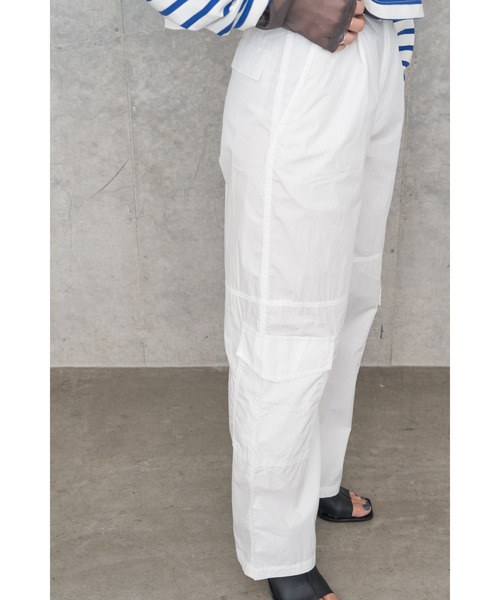 ナイロン素材を落とし込んだモードなカーゴパンツ。 ゆったりしたカジュアルシルエットですが、ナイロン素材を使用したことにより、カジュアルさを一切そぎ落とし、モードを追求したパンツです。 シルエットは程よくゆとりがあるセミワイドパンツ。カットソー合わせからシャツ系まで様々なトップスとの相性抜群。【お買い物をよりお楽しみいただくために】 ■商品のお気に入り登録(ハートマークをクリック) 完売カラーの再入荷通知や、在庫ラスト1点の通知、セールの通知を受け取ることができます。 ■ブランドのお気に入り登録 新商品がUPされたり売り切れ商品が再入荷したときなど、いち早くブランドのお得な情報を受け取ることができます。 是非ご利用頂き、お買い物をお楽しみください。