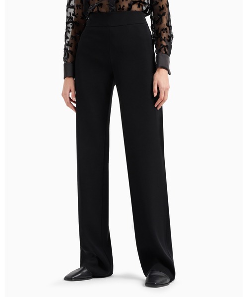 ステートメントスタイルを演出する、タイムレスなセレクション。さまざまにスタイリングでき、多彩なシーンでまとえる、エレガンスと実用性を兼ね備えたウェアを展開します。ホワイト、ブラック、ブルーなど、アルマーニ特有のニュートラルなニュアンスカラーを含んだカラーパレットと、ミニマルなデザインが融合し、女性のワードローブに欠かせないキーアイテムの数々が誕生しました。ミニマルなスタイルでありながら緻密にデザインされた、完璧なフィットのパラッツォパンツ。朝のビジネスアワーから夜のカクテルタイムまで見事に活躍するデザインに仕上げました。あらゆるシーンでエレガントに映えるアイテムです。<価格改定のお知らせ>2024/12/03付より全世界共通で価格改定をさせて頂きます。商品タグに記載している価格が旧価格のものが混在している場合がございます。何卒ご了承くださいますよう、お願い申し上げます。【EMPORIO ARMANI ブランド紹介】1981年にイタリア、ミラノで誕生。デザイナーはジョルジオ・アルマーニ。イタリア語でエンポリオとは「あらゆるものが手に入る大きな市場」という意味。着心地と自由な発想を大切にしながら、都会的で洗練されたアイテムを提案しています。※こちらはジョルジオ アルマーニ ジャパン株式会社の公式オンラインストアです。アフターサービスにつきましては、当サイト内サポートセンターへご連絡下さい。
