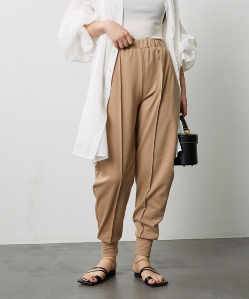 【2022 Spring & Summer 】 Aresense 着心地ときれいめ見えを両立するイージーパンツ ●素材 ポリウレタンが入り、伸縮性に富んだ生地を使用。 ●シルエット ウエストゴムで伸縮性も抜群な楽ちんジョガーパンツ。 カジュアルなアイテムながら、スラックスのような素材感で女性らしく仕上げました。 腰回りはゆとりのあるシルエットながら、裾リブの引き締め効果でスッキリ見せが叶います。 センタープレスが入ったデザインなので、シャツやジャケットなどきちんと感あるアイテムとの合わせにもぴったり。 程よくカジュアルダウンできる大人におすすめのカジュアルアイテムです。 ●こだわり 着心地の良さやデイリーユースできるアイテムでも、女性らしさやきちんと見えも叶えるアイテムにこだわりました。 -------------------------------------------------- 透け感:なし 裏地:なし 伸縮性:あり 光沢感:なし 生地の厚み:普通 -------------------------------------------------- ********************** 商品のサイズ感、素材感などのご質問は、Instagram DMにてご連絡くださいませ。 ■instagram:@aresense_official ********************** ※こちらの商品は、弊社管理上のカラーを表記しております為、タグのカラー表記と異なる記載となっております。 【サイト表記:タグ表記】 ・ブラック:BLACK ・ベージュ:BEIGE ※掲載画像の商品の色味は、屋外や屋内の光の照射や角度により実物と色味が異なる場合がございます。また表示のサイズ感と実物は若干異なる場合もございますので、予めご了承ください。 ※着用、お取り扱いの際は、商品についている品質表示とアテンションタグを必ずご確認下さい。 【Aresense/アーセンス】 ”Aresense”は、「Make sense(理にかなう)」を意味するラテン古語を由来とする言葉。 「心地のよさ」を大切に、機能性とホームケアに配慮したコンフォートアイテムと洗練されたスタイリングで、自分らしい美しさを提案します。