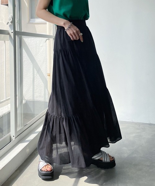 上品な透け感としなやかなハリ感のある生地を使用したティアードスカート!斜めに入った切り替えがモードな印象を与えてくれます。TシャツやロンT合わせはもちろん、ジレやショート丈トップス合わせでのスタイリングも今年らしくおすすめです◎〈注意事項〉・サンプルにて撮影をしておりますので、実際の商品とは素材や仕様・加工・サイズ等が若干異なる場合がございます。・モニター・環境等により実際の商品と色味が多少異なって表示される場合がございます。予めご了承をお願いいたします。・撮影環境により、光の当たり具合で色味が違って見える場合があります。あらかじめご了承下さい。▼気になるアイテムは《お気に入り登録》がおすすめです!完売カラーの再入荷情報、セール情報、ラスト1点の通知を受け取ることができます!▼《ブランドのお気に入り登録》で新商品や再入荷などのお得な情報をいち早くお知らせします。