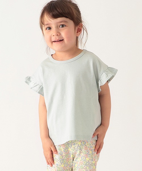 袖フリルがコーデに可愛らしさを覗かせるTシャツです。飽きのこないシンプルなデザインがデイリーに使いやすいポイント。裾は前後で丈感とシルエットを変え、一枚で着てもサマなスタイリングに。インナーとして着合わせれば、他アイテムをよりおしゃれに引き立ててくれる万能さを持っています。カラーによって異なるパターンもチェック必至。内側にお名前を記入できるタグつきです。【透け感】透けない【生地の厚さ】普通【伸縮性】あり【裏地】なし【ポケット】なし