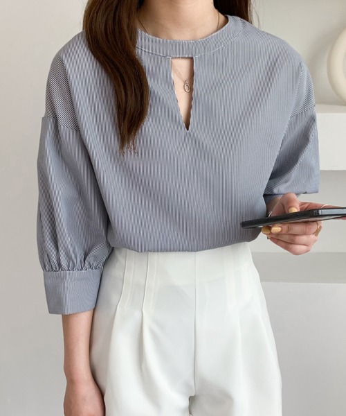 ★前後2WAYで着用可能!オンオフ大活躍ボリュームスリーブが女性らしいブラウスが新登場★生地は綿混素材を使用したことでポリエステル100%のブラウスに比べてシワ感さえもナチュラルな風合いに感じられる上質な1枚です。オフィスカジュアルにはもちろん、デニムにも合わせやすいのでプライベートスタイルにも◎くび元はバンドカラーですっきりと着こなせます♪サイズ感は小さすぎず大きすぎないのでボトムへINでもOUTでも着こなしやすいのが魅力の1つ!シンプルながらもさり気ないデザインがポイントになるあるブラウスです^^【お買い物をより楽しんで頂くために】▼商品のお気に入り登録♡のクリックで商品のお気に入り登録が完了!完売カラー再入荷のお知らせ、ラスト1点のお知らせ、セールのお知らせを受け取ることができます。▼ブランドのお気に入り登録新商品や再入荷のお知らせ等、いち早くブランドのお得な情報を受け取ることができます。※他のキャンペーンにより、期間中に価格が変動する場合があります。※セールは予告なく終了させていただく場合もあります。※商品画像は撮影時の光や角度により、実物の色味と異なって見える場合がございます。※生産時期により色・素材・サイズ感など多少異なる場合がございます。予めご了承ください。※画像の商品はサンプルとなります。実際の商品と色味、仕様、加工、サイズ、素材等が若干異なる場合がございます。●サイズ表をご確認の上、お間違いのないようご購入下さい。※サイズは平置きで測定しております。 サイズは、実寸サイズを測っているため多少誤差がでる場合があります。 製造工程の関係上、各採寸箇所実寸(平置き)より【約-2cm~+2cm】程度は 誤差の許容範囲とさせて頂いておりますので、予めご了承くださいませ。