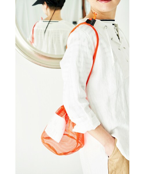 バックブランド、『20/80(トゥエンティー・エイティー)』。日本各地の伝統的な手法や素材を活かしたシンプルで機能的なデザインが特徴的。コンセプトは、『歴史と過去のアーカイブをひも解く。必然性のある機能や構造は素晴らしいデザインを生みだすことがある。日常のための優れた道具とは何か。タフで機能的であり、シンプルで美しいもの。そんな道具を、新しいスタンダードを作っていきたい。』 蛍光カラーが目を引きます!固さのあるしっかりしたナイロンメッシュを使用したPERSONAL EFFECTS BAG(身の回り品入れ)。USミリタリーをベースに、ラベルも忠実に再現することでリメイクのようなデザインに仕上げています。紐は肩掛けできるよう少し長めに設定、栃木レザーのストッパーも付属しています。お財布やポーチなどお出かけに必要な最低限の荷物が十分収納できるサイズ感になっています。 (着用モデル身長:163cm)