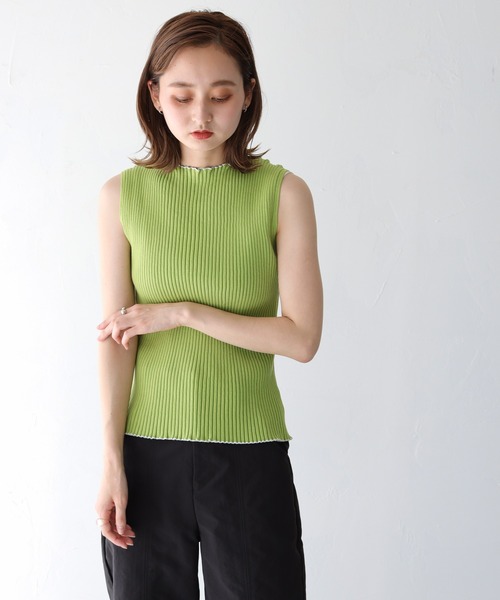 配色がポイントのきれいめサマーニット 程よくフィットしながらもワイドリブですっきり見える1着。 ノースリーブでも少し長めの見え感になっているので、女性らしさが際立ちます。 ネックと裾にあしらった配色がさりげなくポイントになっています。 【FABRIC】 コットンをメインとした素材を使用。 心地いい肌触りで夏でも快適に着用していただけます。 ************************************************************* ◆透け感:なし ◆厚み:薄手 ◆裏地:なし ◆伸縮性:あり ************************************************************* 【お買い物におすすめの便利機能】 ※商品のお気に入り登録 完売カラーの再入荷時や、ラスト1点の時、セール開始時にお知らせ致します。 ※ブランドのお気に入り登録 新商品や再入荷、セール情報等、いち早くブランドのお得な情報を受け取る事が出来ます。 ぜひご活用ください。