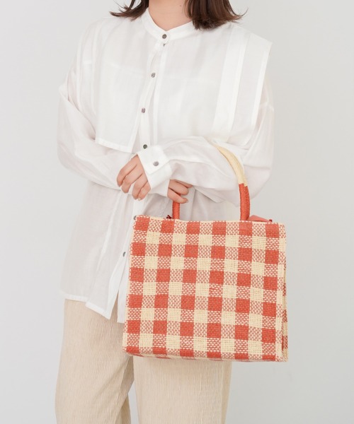 【商品紹介】ピクニックなどお出かけシーンにぴったりなギンガムトートバッグ。春夏ムードを高めてくれる華やかなギンガムチェック柄のトートバッグ。マチ幅がしっかりとある形状なので収納性もあり、実用性もあるバッグです。@ p o i n t・形状を保ちやすい素材なので収納力のあるトートバッグです。・中身が見えにくい巾着仕様なので実用性もばっちり。※撮影写真には風合い・色味調整の為フィルター加工を施しております。商品のお色目の基準は商品単体の画像をご参考にお願いいたします。【お取り扱い上の御注意】<色移り・色落ちについてのご注意点>この商品は摩擦(特に湿った状態での摩擦)や汗や雨などでぬれた時は他の衣料や下着に色が移る事がありますので、十分ご注意ください。また洗濯の際に移染する場合もございますので、他の物とは分けて洗う事をお勧めします。●現在の技術では、密閉・密着・摩擦・水濡れ等による色落ちや色移行は避けられません。特にデニムや濃淡の組み合わせは色移行が発生しやすくなりますのでご注意下さい。●密閉・密着・摩擦・水濡れ等は、コバ部分や表面コーティングの剥がれ・色移行等が発生する原因となります。●素材や加工等により、織りムラ・色ブレ・風合い・サイズ等に若干の個体差が発生する場合がございます。●破損の原因となりますので、過度に負担をかけないようにご注意下さい。●高温多湿な場所や直射日光を避け、風通しの良い涼しい場所で保管して下さい。●素材や加工で発生した臭いが残っている場合は、風通しの良い場所で陰干しの上ご使用下さい。●別途洗濯に関する記載がある場合を除き、洗濯やクリーニングはおやめください。取り扱いの際は取り扱い絵表示確認の上充分注意して下さい。※ 写真撮影環境の関係により、実際よりも色味が違って見える場合があります。またパソコン・スマートフォンなどの環境により、若干製品と画像のカラーが異なる場合もございます。お色めの基準は商品単体の画像をご参考にお願いいたします。予めご了承ください。