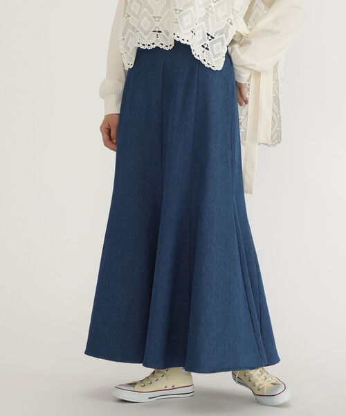 大人の余裕を漂わせて 裾にかけてフレアに広がるマーメイドスカートがデニム素材で登場。 たっぷりと生地を使用し動くたびに広がる綺麗なマーメイドラインを実現。スタイルアップ効果も期待できます。定番素材でシーズンレスに着用いただける万能アイテム。 カジュアルスタイルをワンランク格上げする、美シルエットのスカートです。 BEAMS STAFF:H166 Size:FREE ********************** 生地の厚さ:普通 透け感:なし 伸縮性:なし 光沢感:なし 裏地:なし **********************