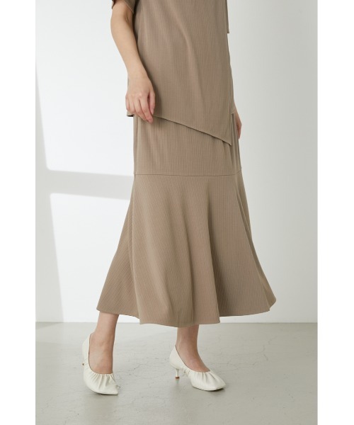 カットソースカート!セットアップ★凸凹した表面感が表情のあるカットソー素材を使用したマーメイドスカート。切り替えまではすっきりとしたシルエットに、裾には程よいボリュームのフレアーを入れアクセントを付けました。切り替え位置で絞りすぎず、緩さを残したマーメードライン。表面感と張り感があるので体のあたりも気になりにくく、カットソー素材なので伸縮性にも優れ、リラックスして着ていただくことができます。ウエストは総ゴムでタイプです。ランダムリブアシメTOPとセットアップでの着用がおすすめです。ご家庭の洗濯機でデリケート洗いができます。 <LILIDIA> 自分の感性を大切にする大人の女性にむけ 着心地や肌触りはもちろん メリハリのあるフォルム、ディテール にこだわり 美を追求し 身につけるとより美しさが際立つスタイルを提案します 。 いつまでも女性でいる事を楽しみ 輝き続けている女性が さらに輝くアイテムを提案します。 ▼商品のお気に入り登録 お気に入りアイテムの値下げ・再入荷・在庫1点などの通知を受け取ることができます。 ▼ブランドのお気に入り 登録新商品や再入荷、セール、クーポン配布などお得な情報を受け取ることができます。