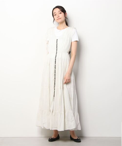 小さなボタンとフリルが付いたコットンのロングワンピースです。 肩にはひも付きです。 【ottod'Ame/オットダム】 イタリア語で「無限の意味を持つシンボル=8」を意味するottoと「女性」を意味する「DAME」を合わせた名前です。 女性デザイナーSilvia Mazzoliのクリエイションは着る為にデザインされたものでありながら現代的な感覚を失わず、それでいていつまでも流行遅れにならないスタイルを提案します。 カジュアルでありながらグラマラス、そして繊細なロマンティックさを兼ねたロック精神。女性誰もが持つ内面を引き出し、着る人によってその個性を引き立たたせるようなコレクションを展開していきます。