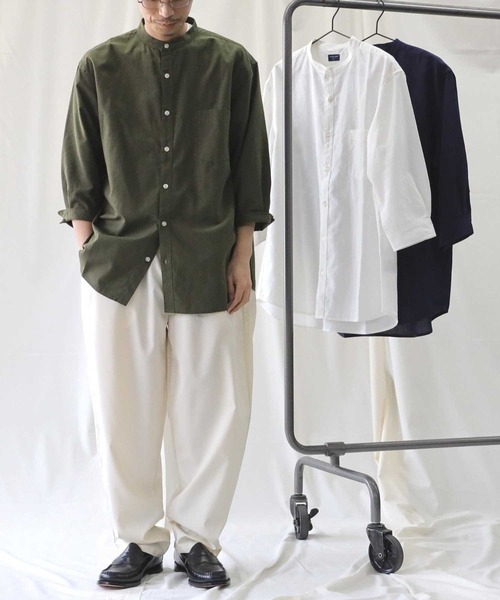 涼しげな麻混素材を使用した7分袖シャツ。ポリレーヨンリネン混で、麻100に比べシワになりにくいのが嬉しいポイント。接触冷感機能もあり、蒸し暑い初夏でも快適に着用できます。ネイビー、オリーブ、ホワイトの3色展開です。