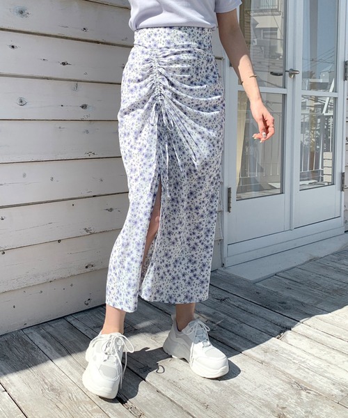 トレンドのドロストデザインが目を惹くナロースカート ■デザイン ・ドロストデザインが大人見えなナロースカート。 ・ハイウエストシルエットと、スリット入りで女性らしさを漂わせながらスタイルアップ効果も。 ・リボンは自分好みに絞って長さの調整が可能です。 ・合わせるトップス次第でコーディネートの幅が広がる1枚です。 ■カラー ・オフホワイト(花柄)/アイボリー(花柄)/ブルー(無地)/ブラック(無地)の4色展開。 ■スタイリング ・肌見せトップスと合わせると旬なヘルシースタイルが完成。 ・Tシャツ等のカットソーで合わせても程よい抜け感で大人上品なコーデに。 ・足元はトレンドのブーツサンダルや厚底スニーカーがおすすめです。 ■Point ドロスト、リボン、スリット、ナロースカート、ロングスカート、ハイウエスト、花柄、肌見せ、ヘルシー、ガーリー、カジュアル、韓国コーデ、韓国ファッション、夏、夏服、夏コーデ、大学生コーデ、通学コーデ、通勤コーデ、オフィスカジュアル、プチプラ、着まわし、着まわしコーデ ----------------------------- 裏地:あり 光沢感:なし 透け感:ややあり(オフホワイト/アイボリー) 伸縮性:なし ----------------------------- model:166cm ※着用、お取り扱いの際は、商品についている品質表示とアテンションタグを必ずご確認下さい。 ※ご覧のモニター環境や撮影環境により実際の商品と多少色味が異なって見える場合がございます。 ご理解の程よろしくお願いいたします。 ■お気に入り登録のおすすめ 【気になるアイテムを登録】 ハートをクリックしてお気に入りに登録すると 完売カラーの再入荷やラスト1点の通知、セールの通知を受けとることができます。 【ブランドを登録】 新商品や再入荷、セール通知など、いち早くブランドの情報を受けとることができます。