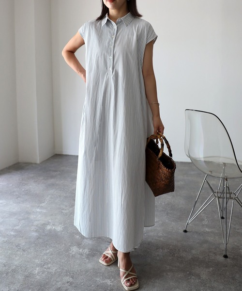 【Riberry ストライプノースリシャツワンピース】 夏にピッタリのストライプノースリワンピース ■Styling トレンドのストライプシャツにノースリワンピ登場☆ 1枚でコーデが完成するシャツワンピは楽可愛いアイテム。 カーディガンやトレーナーをレイヤードすればさらに今年らしく。 編み込みサンダルやカゴバックと共に夏コーデで。 ■Detail 着丈がたっぷりのAラインワンピース ゆったりとしたディテールは体型カバーにも◎ シンプルな形なので、いろんなスタイルと合わせて頂けます! ■Material サラッとした生地感で、夏でも涼しく着て頂けます。 ※詳しいお手入れ方法は商品タグをご参照ください。 【Information】 ◆《お気に入り登録》がオススメ◆ ・「商品のお気に入り登録」で再入荷通知や、ラストの通知、セール通知も受け取ることが出来ます。 ・「ブランドのお気に入り登録」で新商品や再入荷など、お得な情報を受け取ることが出来ます ※撮影時のライティング、ご覧になっているモニター・PC環境により、実際の商品と色味が異なって見える場合がございます。予めご了承をお願い致します。