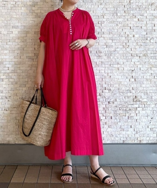 軽やかなコットンボイルのロングワンピース●POINT・気兼ねなく着れる5分袖ワンピース・夏らしい軽やかなコットンボイルを使用・一枚で様になるこなれ感のあるワンピース●デザイン繊細な透け感のあるコットンボイル素材で仕立てた、ルックスも着心地も軽やかな一枚。ゆるりとしたシルエットでリラックスムードでも着ていただけます。製品洗いを施すことで、まるで洗いざらしのような落ち感を出しています。前釦は少し開けてスリットネック風の着こなしがおすすめです袖口の釦は開けて着てもアクセントになり、かわいく着られます。●おすすめコーディネートスニーカーと合わせてカジュアルに、華奢なサンダルと合わせてエレガントに、足元によって印象が変えられます。光沢感のあるアクセサリーをプラスすると、綿素材とのコントラストが出来てオススメです。ピンクやブルーのコーディネートに映える色展開◎●素材本体:綿100%インナー:綿100%・コットンボイル素材が肌に優しく着心地抜群・吸水性、通気性が良く涼しい洗濯方法:手洗い透け感:なし伸縮性:なし裏地:なし生地の厚さ:普通光沢:なしファスナー:なしポケット:ありウエストゴム:なし【スタッフ着用コメント】●身長:171cm 着用サイズ:F 骨格:ウェーブとても軽い着心地でペチコート付きのコットンワンピース袖口も肘にかかる5分袖なので二の腕周りも気にせずにおめしいただけます。ペチコートもコットン素材なので暑がりさんにもおすすめです。羽織りいらずて着れるワンピースは色違いで揃えたいアイテム。個人的には前ボタンを少し開けてスリットネック風の着こなしがおすすめです。●身長:163cm 着用サイズ:F 骨格:ナチュラルコットン100%の軽くて心地良い肌触りのワンピース。涼しいので真夏に着たい!キャミワンピース型のコットン素材のペチコート付きなので安心。着丈は163センチの身長で足首しっかり見える着丈です。小柄さんにもオススメ!●身長:158cm 着用サイズ:F 骨格:ストレート1枚でサマになる、嬉しい袖ありワンピース。二の腕を隠してくれる袖丈と、綿素材なのでベタつかず、涼しく着ていただけます。袖周りは、昨年のものより少しゆとりを出しました。 ==========================【注意点】※画像の商品は光の照射や角度、お使いのモニター環境により、実物と色味が異なる場合がございます。 あらかじめご了承下さいませ。==========================【お買い物をもっと便利に楽しく♪】『♡』をクリックでお気に入り登録✓「商品のお気に入り登録」で・・・ラスト1点や再入荷の通知が届きます。登録して頂いた商品だけが対象となる、あなただけのタイムセールが開催されることも!✓「ブランドのお気に入り登録」で・・・新商品や再入荷など、いち早くブランドのお得な情報を受け取ることができますので、ご登録をおすすめします!==========================