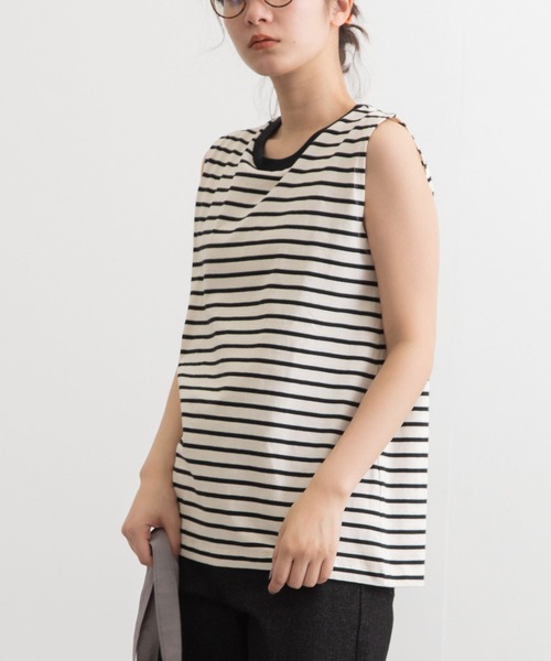 ベーシックな形のノースリーブ ■Point ・ボーダー、ドットの定番の柄展開で揃えました。 ・やや詰まった衿ぐりで、体に添い過ぎないサイジングです。 ■Styling ・1枚ではもちろんインナーなどにもマルチに活躍してくれます。 ・定番のデニムと合わせたり、ヘルシーな着こなしがおすすめです。 -------------------- 透け感:なし 厚さ:普通 伸縮性:ややあり -------------------- POU DOU DOU プードゥドゥ ひと手間加えた存在感のある「日常着」 いつまでもときめきとかわいいを忘れない方への 愛着を持てるワードローブ = お気に入り登録がおすすめ!= POU DOU DOUのお得な情報をいち早くお届け致します◎ アイテムをお気に入り ⇒ SALE START / 完売COLOR再入荷 / LAST1点 etc... ブランドをお気に入り ⇒新商品 / 再入荷 /クーポン・セール情報 etc...