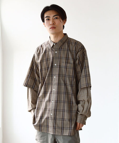 目を引くフェイクレイヤード ルーズフィットの袖フェイクレイヤードシャツ。袖のアームホールから2枚仕立てにしているため、あたかもレイヤードしているような見え方にしています。身頃と袖部分を同系色で違う柄にしており、レイヤード感ははっきりわかりながらも、全体的に馴染むような工夫をしています。これからの時期にさらりと着たい一着です。 Model:H177cm W62kg Size:L ※商品の色味は白背景商品単体で撮影した画像をご参照ください。 ※屋外撮影による光の当たり具合やパソコンなどの閲覧環境によって、実際の色味と異なって見える場合がございます。予めご了承ください。 生地の厚さ:やや薄手 透け感:なし 伸縮性:なし 光沢感:なし 裏地:なし 【スタッフレビュー】 スタッフ:平柳 楓馬 身長:177cm / 普段サイズ:M / 着用サイズ:M サイズ感: 全体的にルーズシルエット。肩から長袖部分となっています。 素材感: やや薄手でハリのあるコットン生地。 ポイント: 半袖シャツと異なるチェック柄の長袖がレイヤードされていて、存在感のあるトップスを演出できます。 BEAMS / ビームス 1976年、創立とともに生まれたメンズカジュアルレーベル。“BASIC & EXCITING”をテーマに心地良い日常着を追求しています。グローバルな視点からさまざまなトレンドを取り入れつつ、スポーツ、ワーク、ミリタリーといったカジュアルウェアの基本と、アイビー、ロック、サーフスケートといった着こなしのスタイルを咀嚼し、今日的なカジュアルスタイルを提案します。