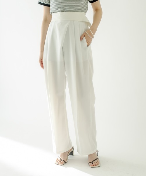 美脚見え間違いなしのハイウエストパンツが登場! 商品ポイント ・フロント部分にタックが入った美脚見え間違いなしのハイウエストパンツ。 ・マジックテープデザインのラップ仕様となっており、着脱もしやすい◎ ・長いシーズンで着れるさらっとした素材感で着心地抜群◎ ・スタイルアップ&体型カバーが嬉しいスラックスです。 ・嬉しい2サイズ展開◎ スタイリングポイント ・今季トレンドのショート丈トップスとの相性抜群◎ ・ショートジャケットと合わせてセットアップ風に着るのもオススメ! ※洗濯、取り扱い 洗濯:40度限度 手洗い アイロン:低温110℃まで スチームなし(あて布使用) タンブル乾燥:不可 ------------------------------------------------------ 裏地:OFFのみあり 伸縮性:なし 光沢感:なし 生地の厚さ:ふつう ------------------------------------------------------ ------------------------------------------------------ 商品のお気に入り登録➡ お気に入りアイテムの値下げ・再入荷・在庫1点などの通知を受け取ることができます。 ブランドのお気に入り登録➡ 新商品や再入荷、セール、クーポン配布などお得な情報を受け取ることができます。 ※サイト上のカラー名と、お届け商品に記載されているカラー名が異なる場合がございます。 ※商品の色味は、撮影場所や光のあたり具合などにより色味が違って見える場合が御座います 。 また、お客様のお使いのPCのモニター環境などにより色味が違って見える場合が御座います。予めご了承の上ご注文下さい。 ※ご注文いただいた予約商品のお届け時期の確認は、注文履歴ページより行えます。 ------------------------------------------------------