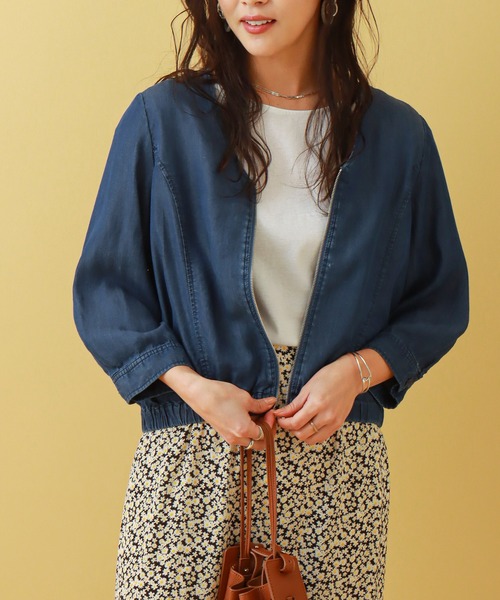 着心地の良い柔らかさが魅力! 環境にも優しいリヨセルデニムブルゾンです◎ ■point ・環境に優しい再生繊維 ・Vネックカラー ・程よい光沢感 ・コンパクトな着丈 ■detail 軽さと柔らかさ、程よい光沢感が魅力のリヨセルデニム。 Vネックのデザインなので、カジュアルになりすぎず女性らしい雰囲気に。 背中部分はたっぷりのギャザーで身体のラインを拾いすぎず コンパクトな丈感とゴム仕様の裾でスッキリとしたシルエットになります。 お家で簡単手洗い可能なイージケア商品です。 ■fabric 環境に優しい再生繊維(セルロース)を使用。 繊維が柔らかく、美しいドレープ感、光沢感があり 吸水性・速乾性に優れたエコ素材です◎ …………………… 透け感:なし 厚さ:薄い 裏 地:なし 光沢感:ややあり 伸縮性:なし ポケット:なし 洗濯方法:手洗い …………………… ※ネットに入れてのお洗濯をお勧めいたします。 ※詳しいお手入れ方法は商品タグをご参照ください。 ■coordinate コンパクトな着丈を活かして、ワンピースの上から羽織ったり、 マーメイドスカートやフレアスカートとの組み合わせがオススメ。 もちろんワイドパンツなどカジュアルなアイテムとも相性ばっちりです◎ 《商品のお気に入り登録》 ・再入荷通知や、ラスト1点の通知、セール通知も受け取ることができます。 《ブランドのお気に入り登録》 ・新商品や再入荷など、お得な情報を受け取ることができます。 ※屋外の光や照明の当たり具合、パソコンなどの閲覧環境によって 実際の色味と異なって見える場合がございます。 予めご了承ください。 ※他のキャンペーンにより、期間中に価格が変動する場合があります。