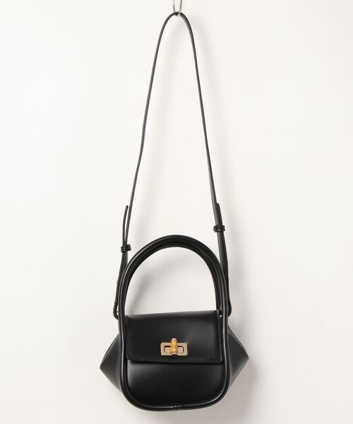 コロンとしたフォルムに合わせたチューブハンドルが可愛らしいバッグ。開口部にバンブーパーツをつけた高見えするデザインです。小振りながらマチがあり、ミニ財布などの最小限の物が入れられます。ショルダーベルトを付けた2Way仕様です。