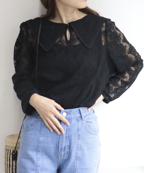 ◇fredy emue◇【2022 SS】シアー 刺繍 総レース 前後2way ブラウス●point・繊細なチュールに刺繍を施したウィンテージレース素材・大きめの衿とセーラーカラーのデザインが今年らしい印象に・さりげない肌見せのシアー感が女性らしさもプラス・前後着用可能で着方の変化を楽しめるのもポイント・価値観のある1枚は着るだけで新鮮なスタイリングが完成します・サロペットのインナーやデニム合わせでカジュアルに外すのがおすすめ◎透け感:あり裏地:なし伸縮性:ややあり光沢感:なし生地の厚さ:薄手洗濯:手洗い可能●お取扱い上のご注意●*商品を長くご愛用していただきたいため、アテンションタグを必ずご確認の上、着用又はお取り扱い下さい。*店頭及び屋外での撮影画像は、光の当たり具合で色味が違って見える場合があります。商品の色味は、スタジオ撮影の画像をご参照下さい。*商品画像に関しては出来る限り忠実に表示出来るよう努めておりますが、お客様がご利用のモニターの設定及び特性により、実際の商品と比較し色味に若干の誤差が生じる場合があります。◇商品のお気に入り登録◇【お気に入りに登録 ♡マークをクリック】を是非ご活用ください! 再入荷の通知や、ラスト1点の通知、セールの通知がいち早く届きます。◇ブランドのお気に入り登録◇新商品や再入荷など、いち早くブランドのお得情報が届きます。