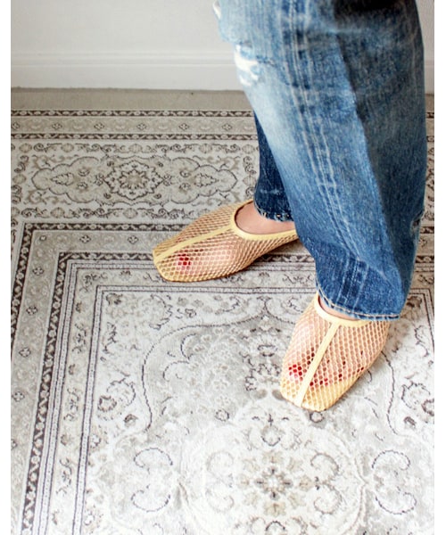 『Pelleterno(ペレテルノ)』のニューコレクションがスタート。大人になればなるほど、靴自体のシルエットも、全身のコーディネートのバランスにも、両方にプラスされる大人っぽさ・フェミニン感・モード感が欲しいところ。カジュアルスタイルが主流の方には、あるあるなのでは?ヒールパンプスを合わせればいいってわけでもないので、ここは慎重に選びたいところ。そんな悩みに毎年応えてくれるのが、ペレテルノのシューズです。今回のシューズも、おそらく足を通した方全員が欲しくなる、納得と満足な一足です。 スポーティなネットメッシュにレザーを組み合わせた透け感がシックなスリッポン。イエローベージュが肌馴染み良く、肌色をよりキレイに見せてくれます。ソックスやペディキュアで遊べる1足。素足になってくシーズン、メッシュが足を包むのでストレスフリーな履き心地も魅力。 (着用モデル身長:163cm)